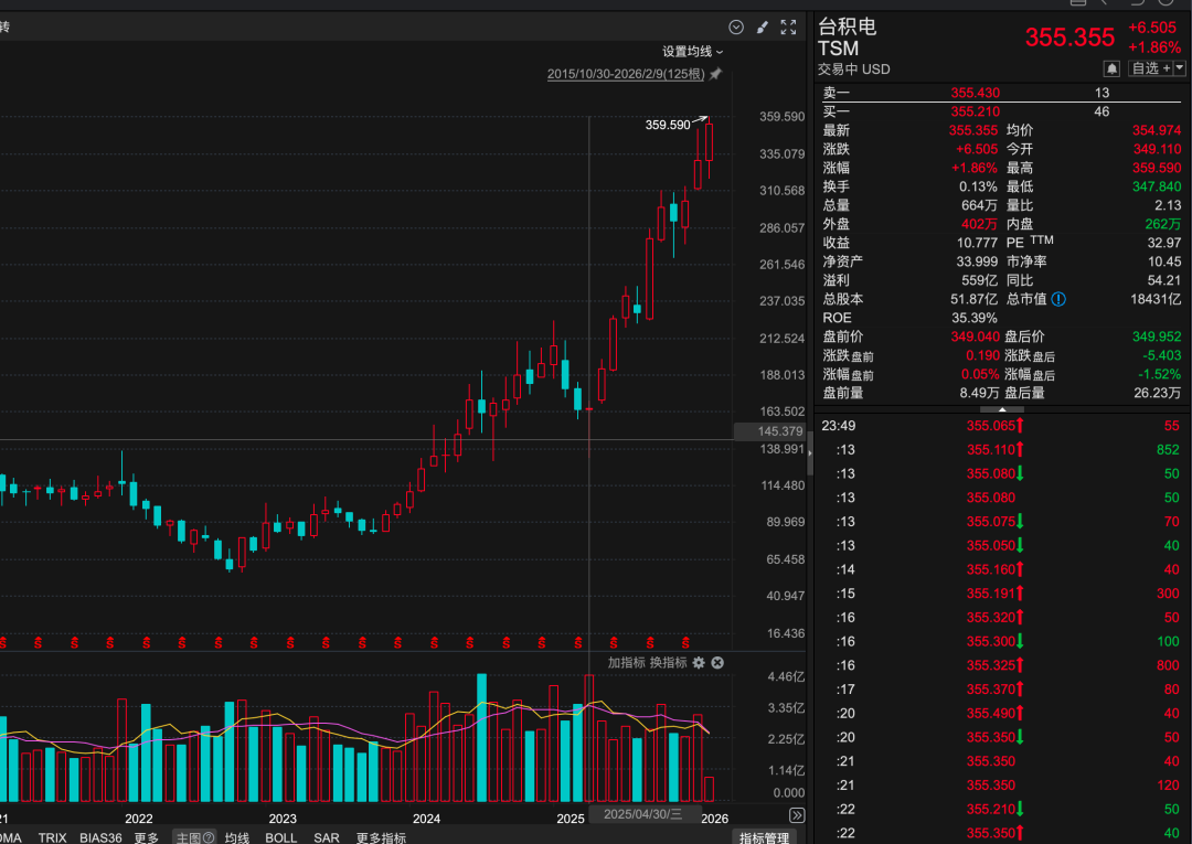 1. 我刚刚看了下台积电历史新高了。