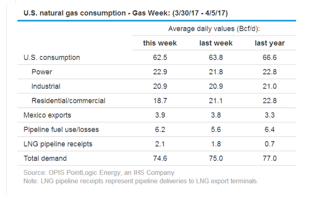 - 供应小涨,从加拿大进口的增加了2%(对应上周weekly update的利好消息)。而消耗减少,主要是因为住宅与商业方面降低了11%。 另外LNG出口涨了些,幅度一般。