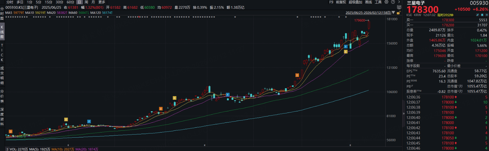 受美光昨夜暴涨的影响,今日三星电子今日涨超6%,再创历史新高!SK海力士涨超3.3%: $南方两倍做多三星电子(07747)$ $南方两倍做多海力士(07709)$
