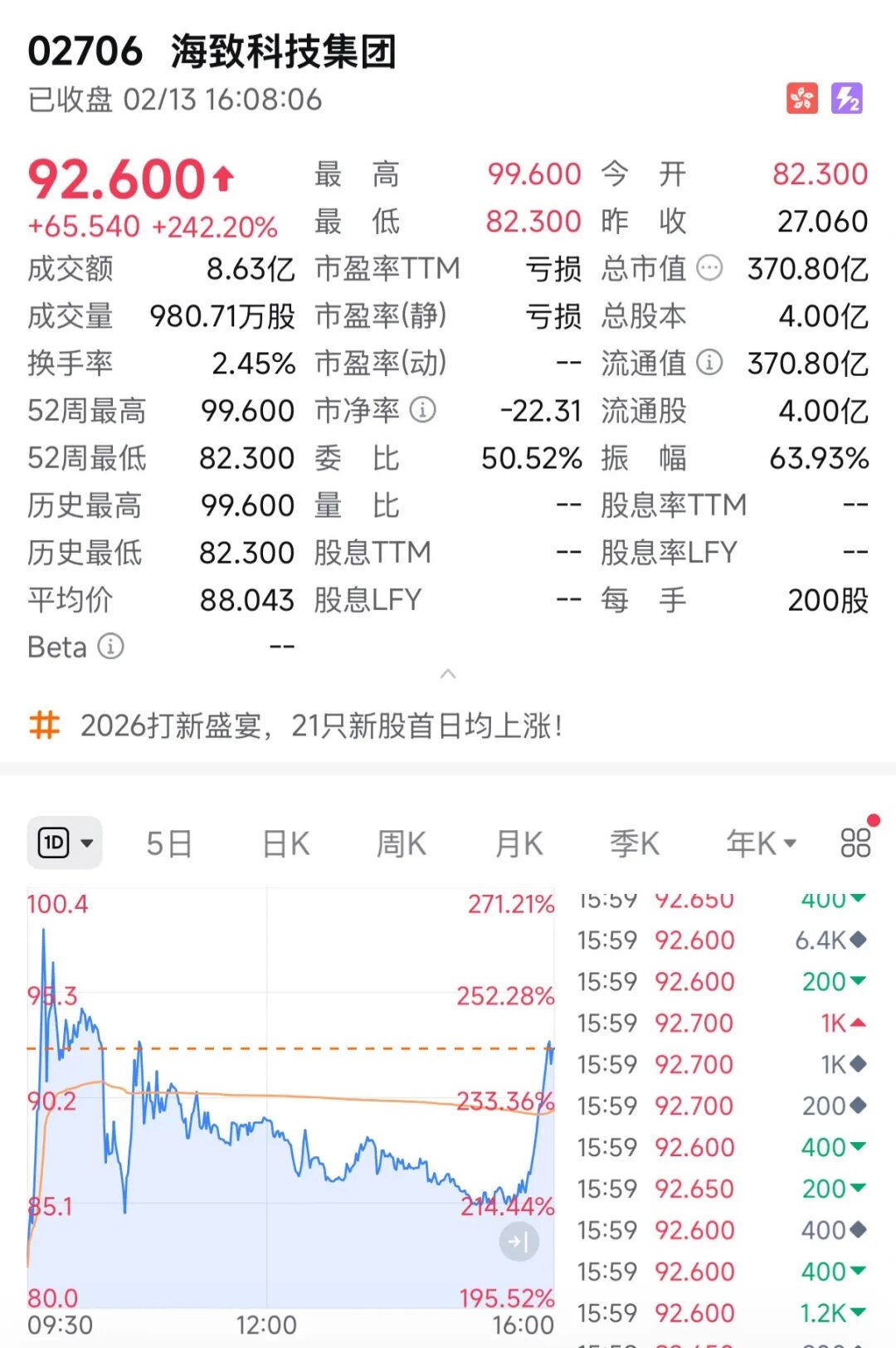 海致这波蹭上AI热点直接爆了,首日涨将近2.5倍,中一手差不多赚1.3万,真是太舒服了。