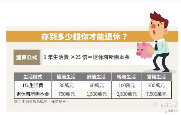 怎么样才算达到了FIRE呢,查了一下相关讨论,大家通常认为的财务自由的金额的设定方法很简单,只要估算一下,我们每年所需的支出金额(在不追求奢华浪费的务实审慎的情况下),将此金额乘以25,就是我们实际需要的财务自由资金!