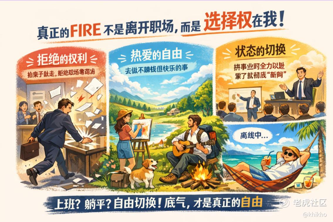 真正的 FIRE 不是离开职场,而是想上班的时候上班,不想上班的时候谁也拦不住咱们。选择权远比离职重要。很多人误以为FIRE是为了逃避劳动,但其实它追求的是财务独立带来的底气。真正的自由不是无所事事,而是: