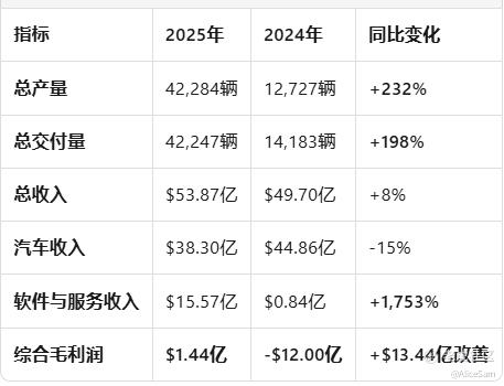 Rivian 2025 财报的核心是汽车收入下滑,但软件与服务爆发式增长,推动毛利转正;公司正从硬件制造向“自研 AI + 自动驾驶 + 车载软件平台”全面转型。