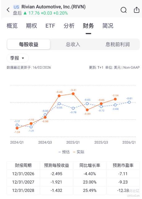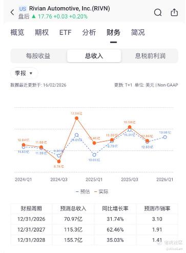 截至2025年底,现金及等价物约60.82亿,流动性充足。2026年指引显示,他们公司将继续加大投资(特别是R2量产和自动驾驶技术),预计EBITDA亏损扩大反映扩张投入,但交付量目标(6.2-6.7万辆)较2025年实际交付(4.2万辆)增长47-59%。新车型RivianR2已于今年1月完成量产验证车制造,计划2026年第二季度开始交付,预计2026年全年交付量约64500辆。
