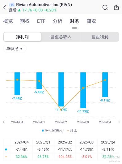 全年总毛利1.44 亿(相比 2024 年 -12 亿,大幅改善),全年实现毛利润转正,这是Rivian历史上首次实现全年正毛利润(1.44亿),相比2024年的-12亿亏损,改善超过13亿。汽车毛利- 4.32 亿(但较2024年改善 ~8 亿美元),软件与服务毛利5.76 亿(2024 年仅 700 万)。汽车业务收入整体下滑(交付量受税收抵免到期影响 + 监管积分下降)。这么看来,Rivian 2025 好像是“成本优化 + 软件变现元年”。