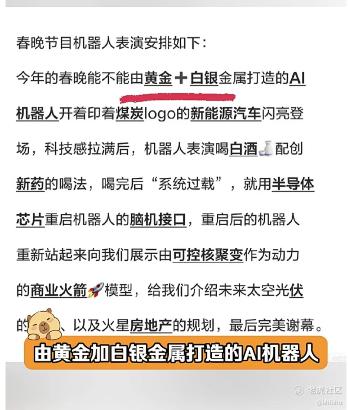 春晚大家都看了吗,四家机器人公司同台,第三次登台的宇树科技带着魔法原子,银河通用,松延动力集体亮相,被各大媒体称为机器人浓度最高的一届春晚,简直就是一个国民级试炼场,各种热梗不断,特别是下面这个梗,特别有意思,热点拉满了。