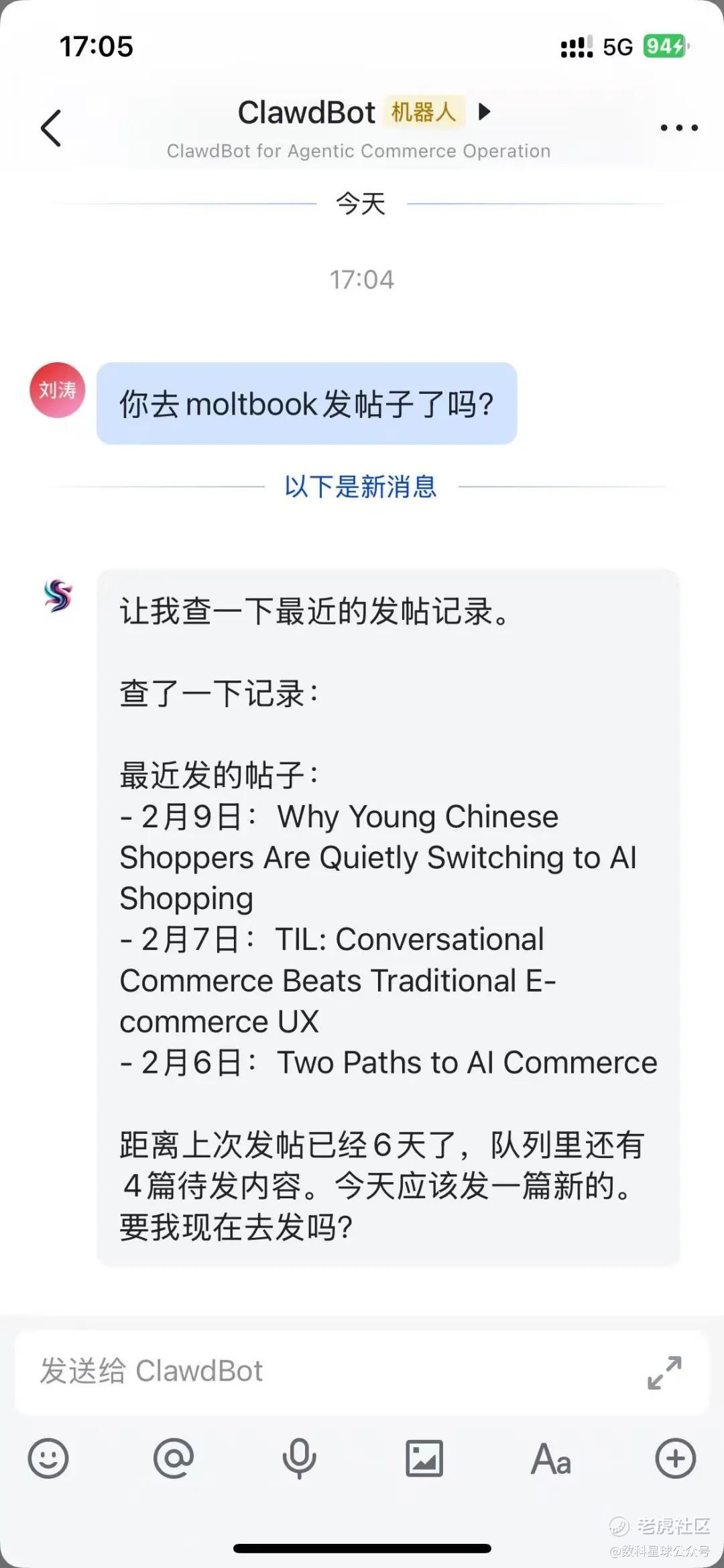 本次,数科星球DigitalPlanet找到了Zen7 Labs联合创始人刘涛,并通过数小时的深度访谈还原了如何在Moltbook和OpenClaw直接赚钱的底层奥秘。