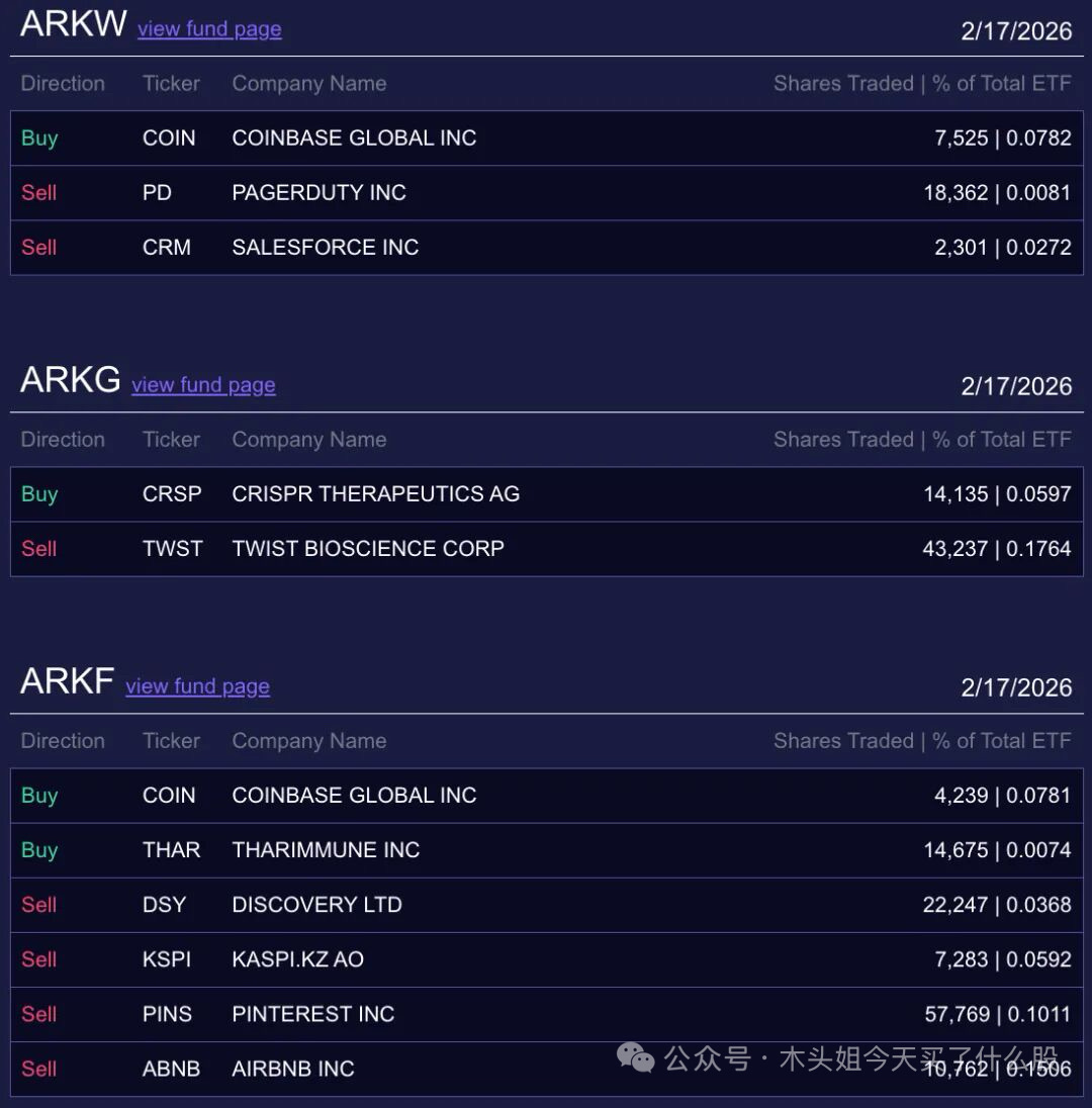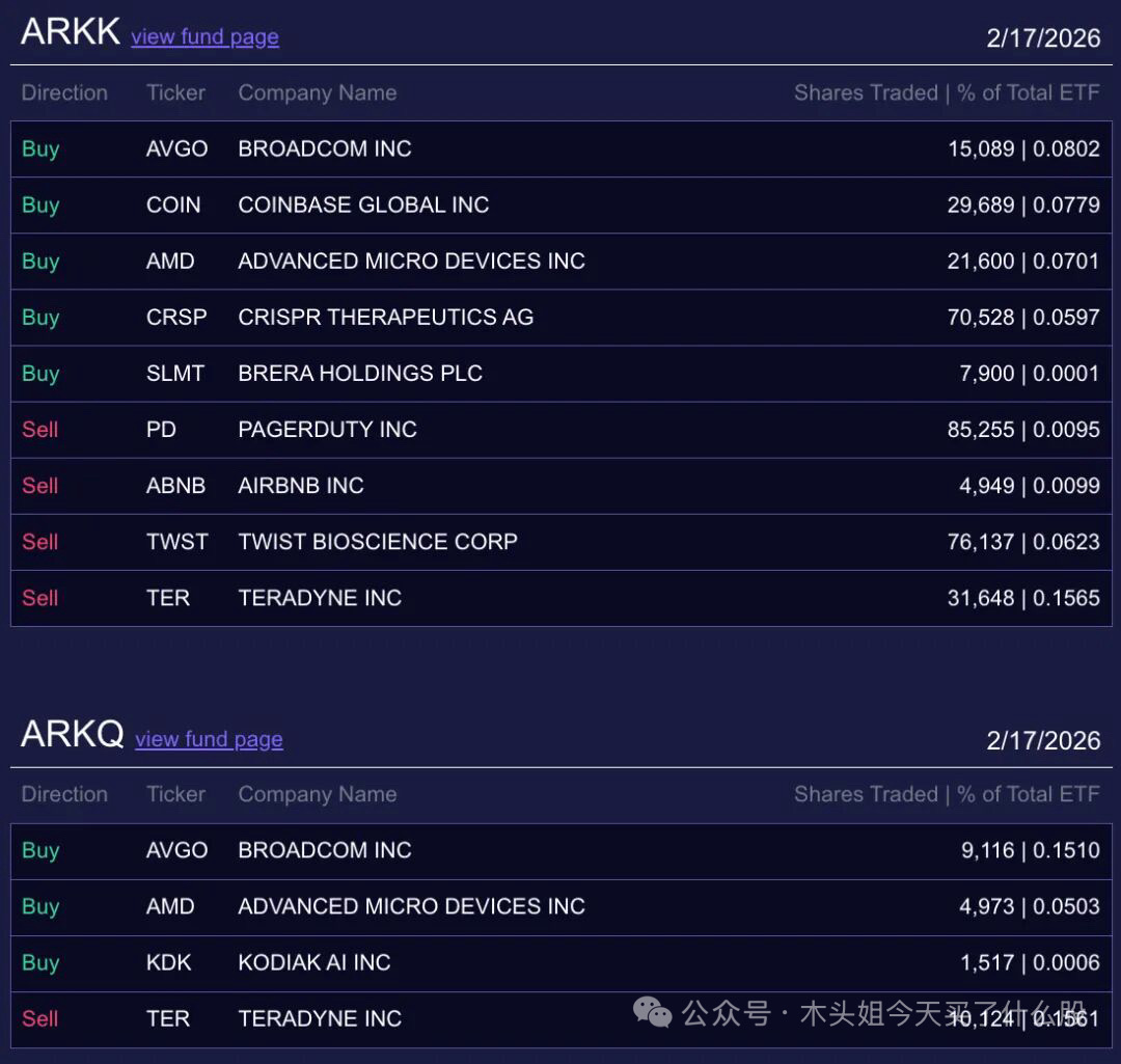 木头姐今天买入800万美元AVGO、690万美元COIN、610万美元AMD、450万美元CRSP、8690美元SLMT、1.4万美元KDK、6.8万美元THAR。