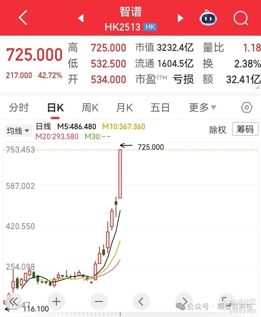 智谱在港上市一个多月,股票翻了6倍多。也就是说,如果你1月8日1W多买一手智谱的股票,今天涨到7W多,这比最近的很多期权都NB!只不过很遗憾,智谱既没有期权,也没有窝轮牛熊证。