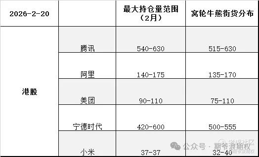 言归正传,不管行情怎么样,期权复盘找方向。下图是今天港股的腾讯、阿里、美团、宁德和小米的期权最大持仓量范围以及窝轮牛熊分布范围,也就是2月的期权筹码分布,黄色的表示跟上个交易日有变动。