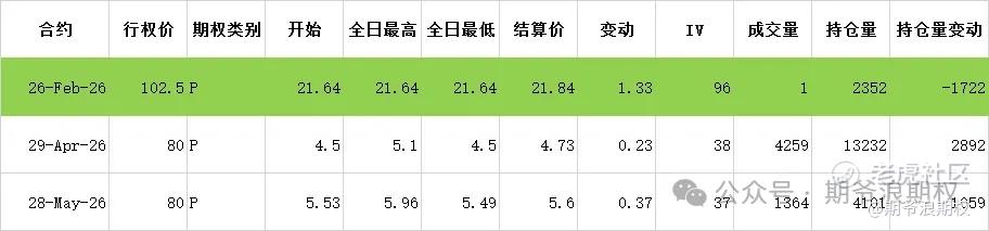 (4)宁德时代:2月最大持仓范围420-600,窝轮牛熊分布500-555,今收526.0,下跌1.03%。期权盘路非常冷清,没有什么特别的。