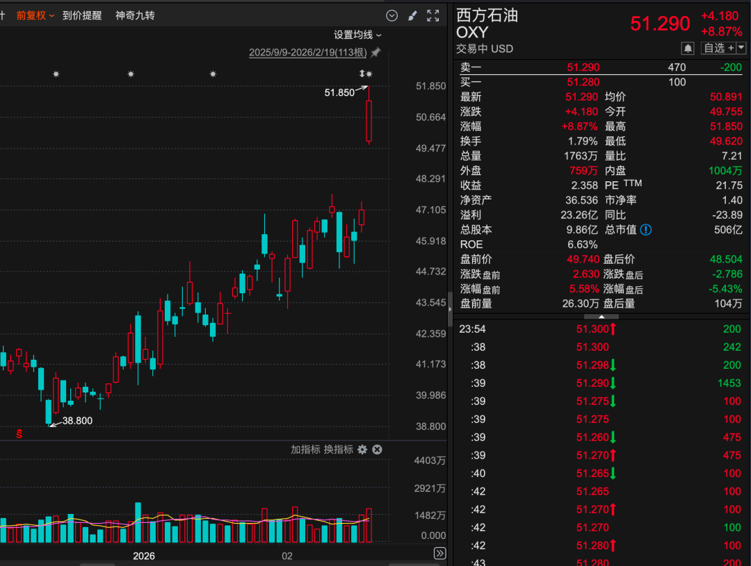 西方石油已经大幅高开了: