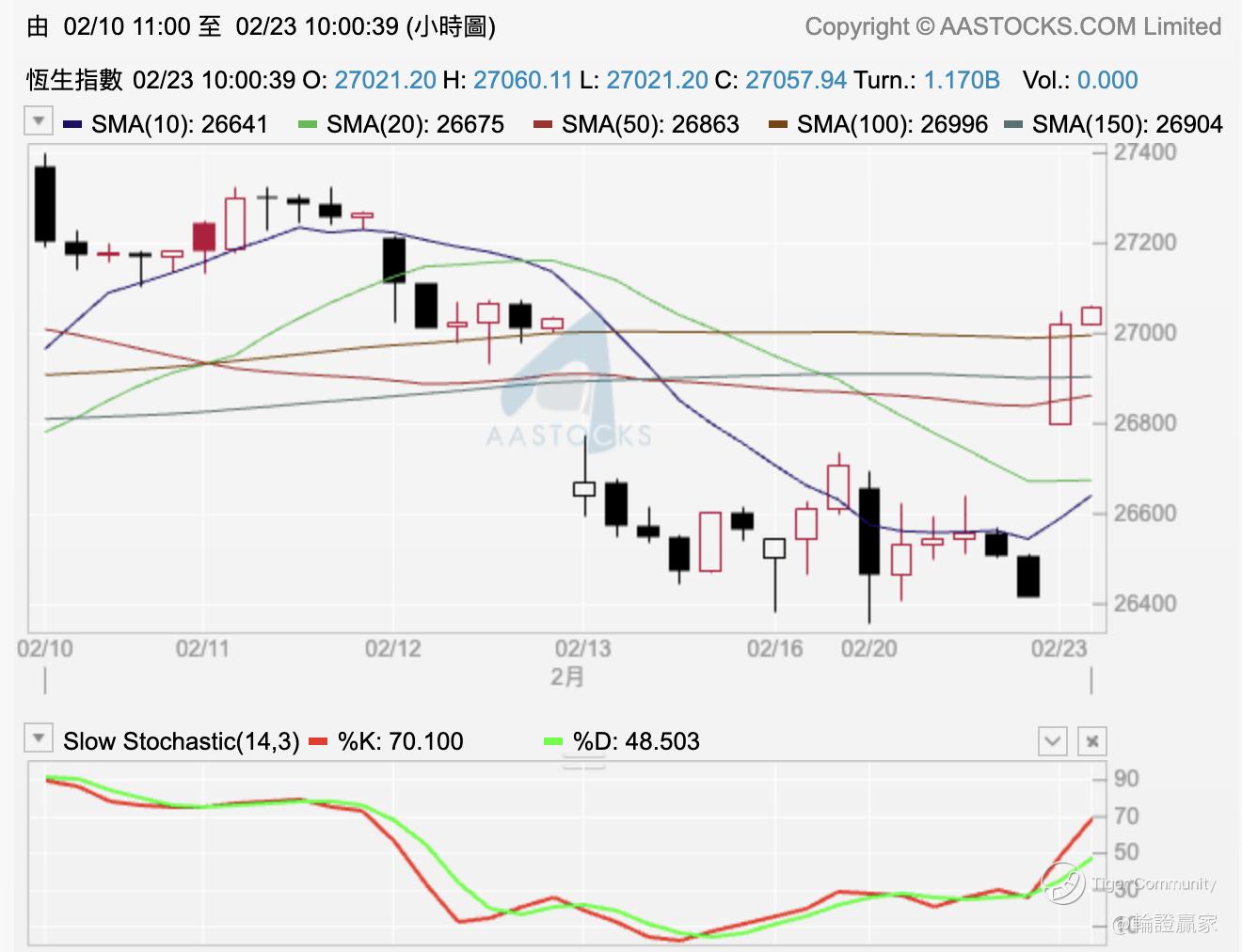 10点未到 $HSI(HSI)$ 上到第一层熊ala重熊区,作战室今日好仓追紧上去,但都真系步步为营,一方面串紧日线图条20线、另一方面又要重新企稳喺27000点之上,仲要今日未见北水,的确有少少吃力,但已feel到佢尽力。