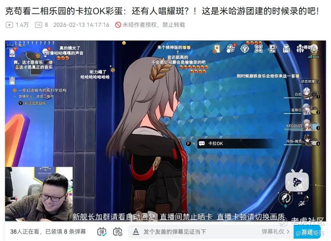 各大主播在第一天都开启了“找梗比赛”。梗的密集程度的确无愧于“欢愉”的主题。开头所说的卡拉OK就是一例。玩家只要站在门外就能听到各种挑战极限的跑调烂歌。有人怀疑这些歌就是米哈游在年会现场直接录下来的。