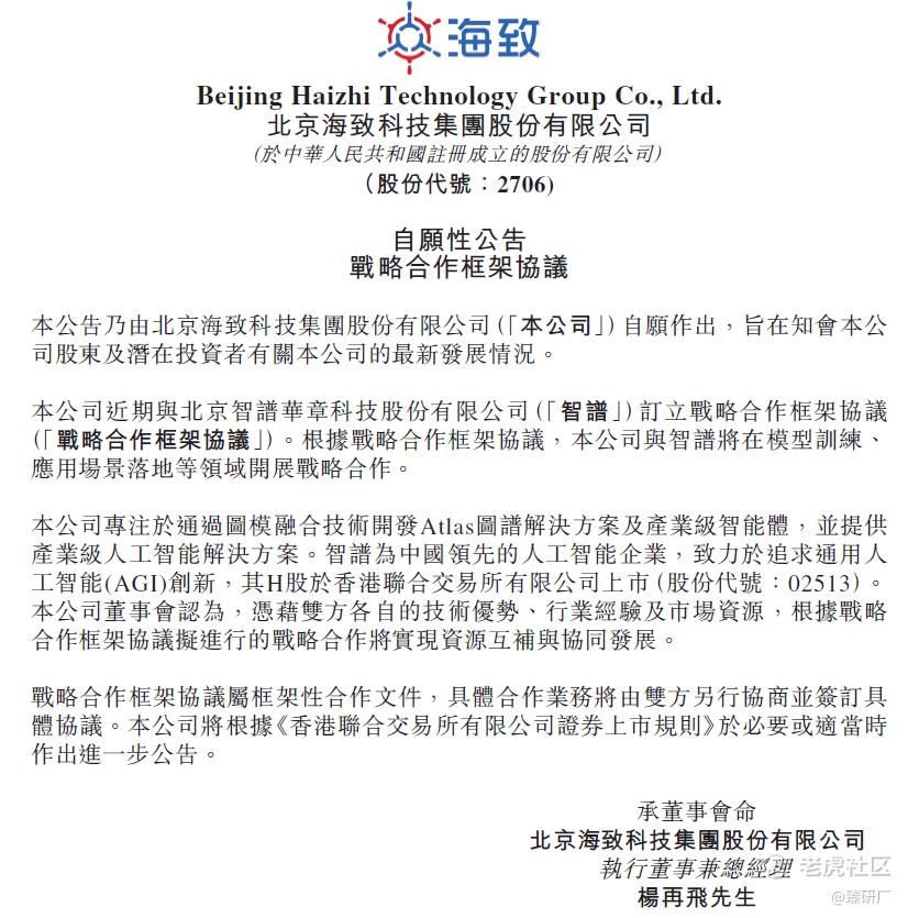 总的来说,从招股时的 4000 倍超购,到首日暴涨,再到如今与智谱牵手,海致科技的每一步都踩在了产业级 AI 演进的关键节点上。它没有选择流量最大、最显眼的 To C 玩法,而是走了一条相对艰难却更具长期价值的路:让 AI 真正做到可控、可信、可落地。
