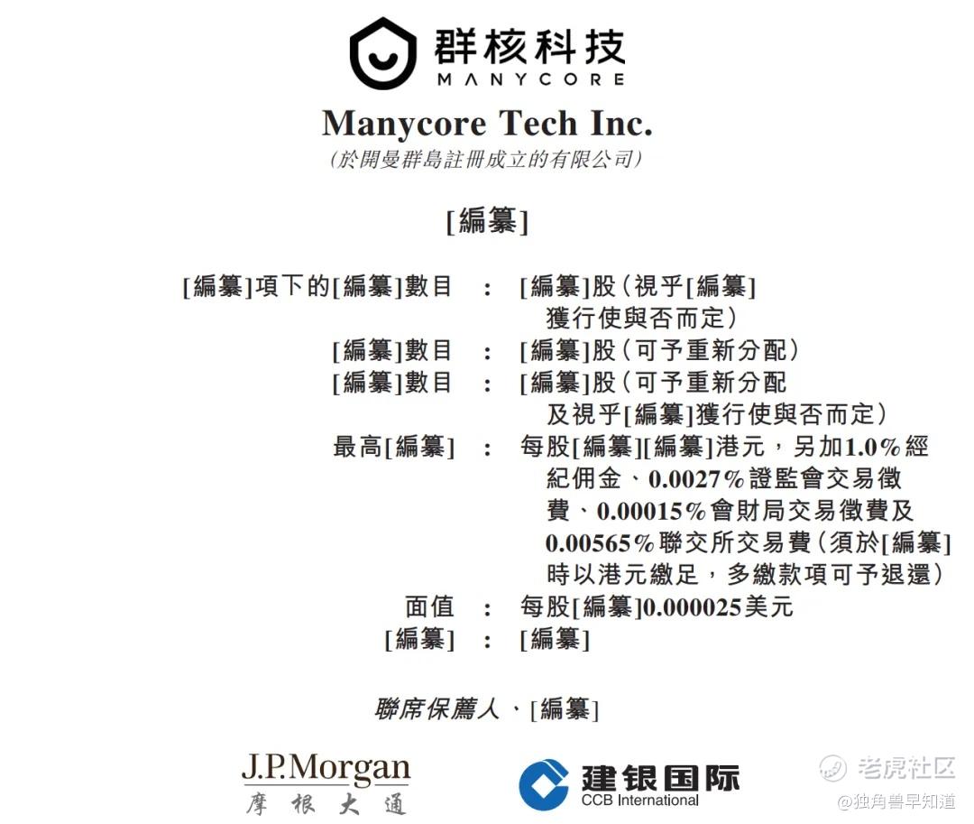 据港交所2月24日披露,Manycore Tech Inc.(群核科技)已向港交所主板递交上市申请,摩根大通、建银国际为联席保荐人。此前,公司已完成港股上市备案,或很快在港交所进行上市聆讯。 $群核科技有限公司(临时代码)(91183)$