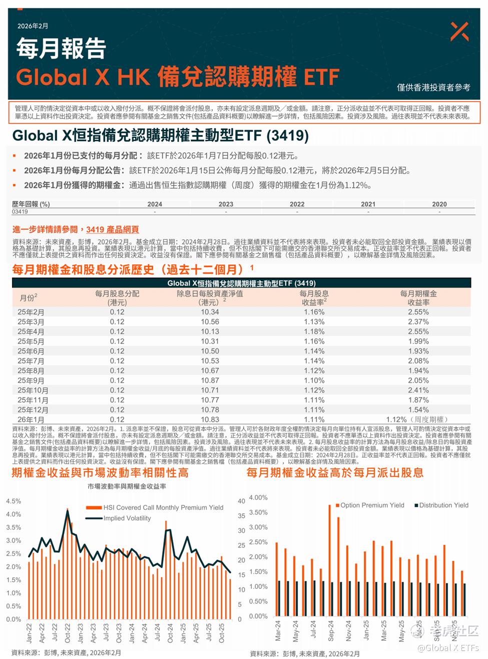 Global X 恒指成份股备兑认购期权主动型 ETF (3419) $A GX恒指备兑(03419)$