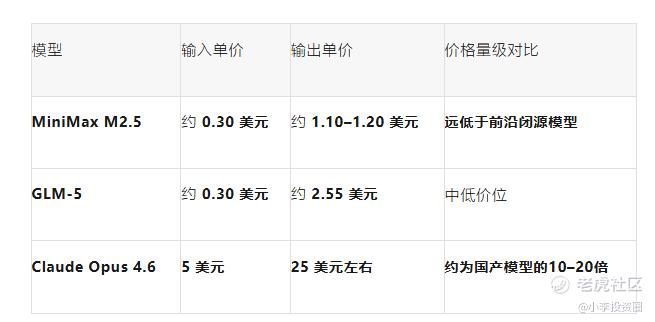 AIBase 测算显示:以输入价格为例,MiniMax M2.5 和 GLM-5 相比 Claude Opus 4.6 具有约16.7倍的价格优势。
