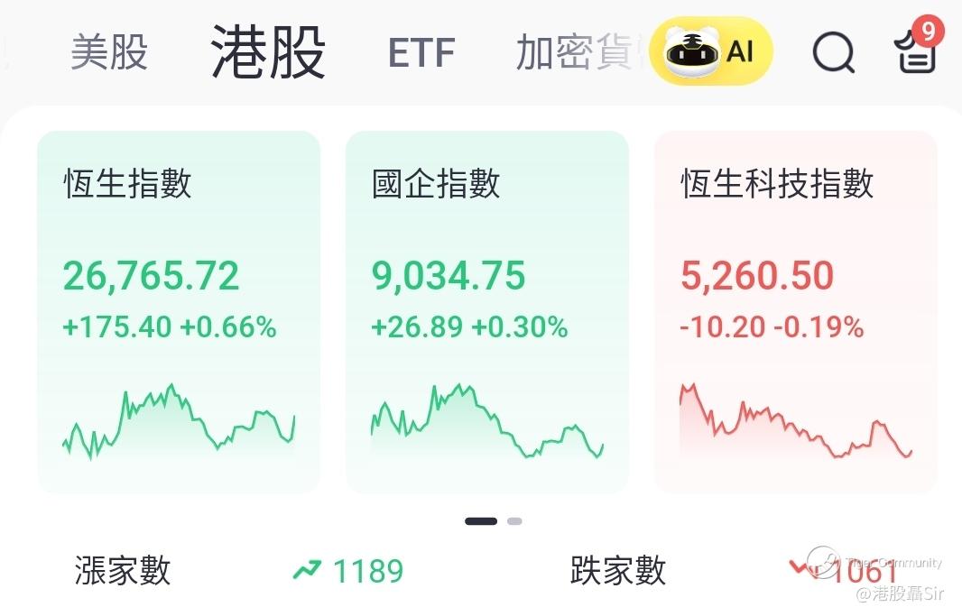 值得留意恒指五大权重股位列第二和第三分别是阿里巴巴-W (9988) $阿里巴巴-SW(09988)$ 和腾讯控股 (0700)$腾讯控股(00700)$ ,合共占权已超过14%,若连同其他大型科技股的蓝筹股如小米集团-W (1810)、美团-W (3690) 和网易-S (9999) 等,这些大型科技股于恒指权重超过1/4,配合近期中港未见自身重大消息带动,所以跟随美国科技股走势不无道理。