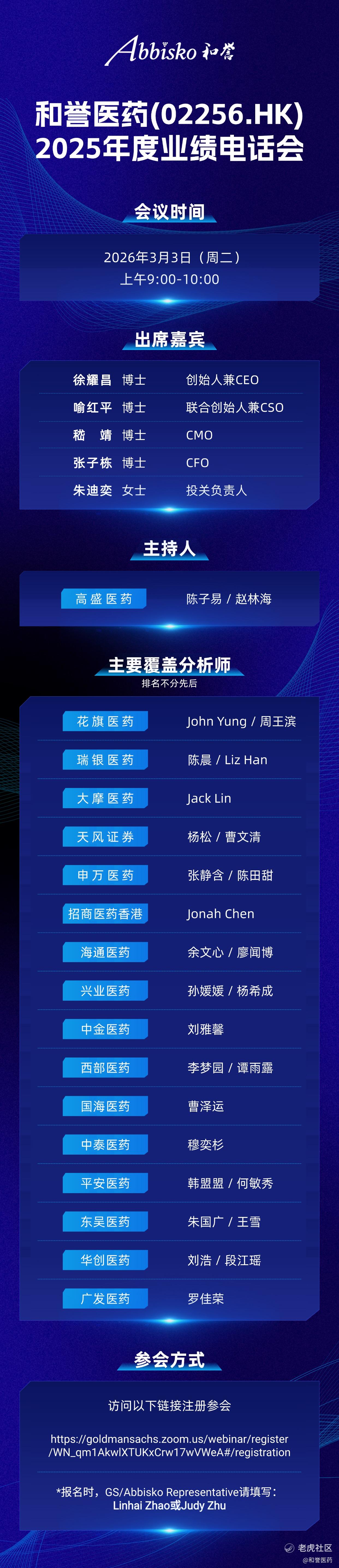 注册参会链接:https://goldmansachs.zoom.us/webinar/register/WN_qm1AkwlXTUKxCrw17wVWeA#/registration