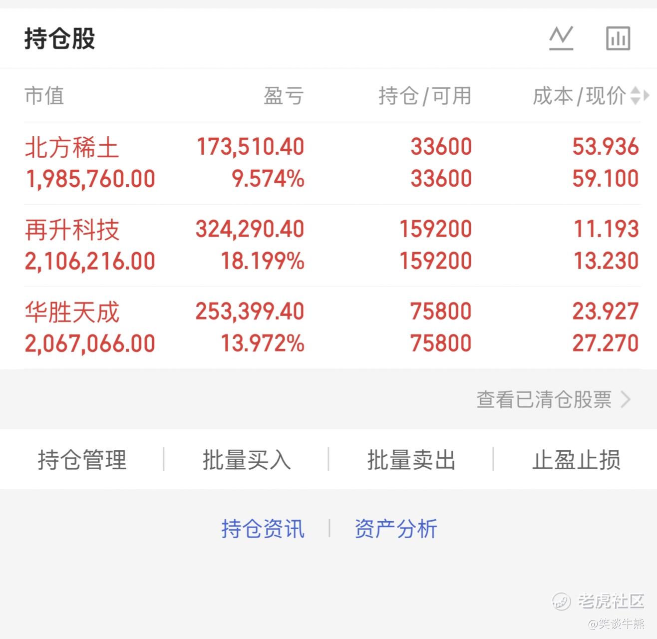 只要认清市场运动的确已经发生,顺着潮流驾驭着你的投机之舟,就能够从中受益。不要和市场讨价还价,最重要的,绝对不可斗胆与之对抗。$华胜天成(600410)$ $北方稀土(600111)$ $再升科技(603601)$