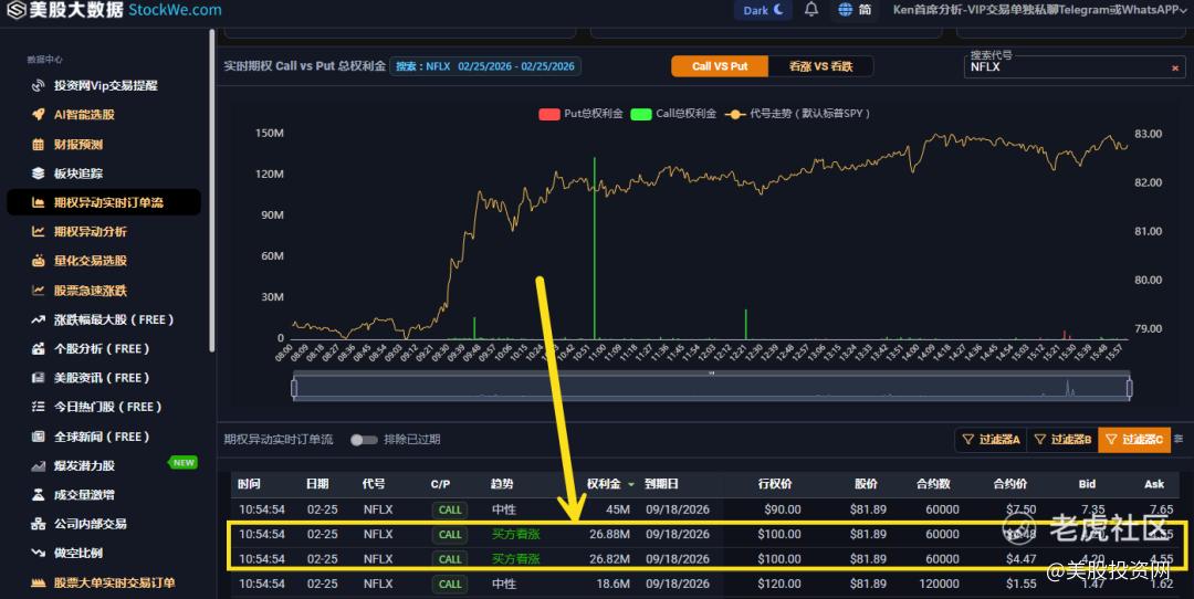 昨天美股投资网文章就说过,机构买入5000万美元的看涨期权 call