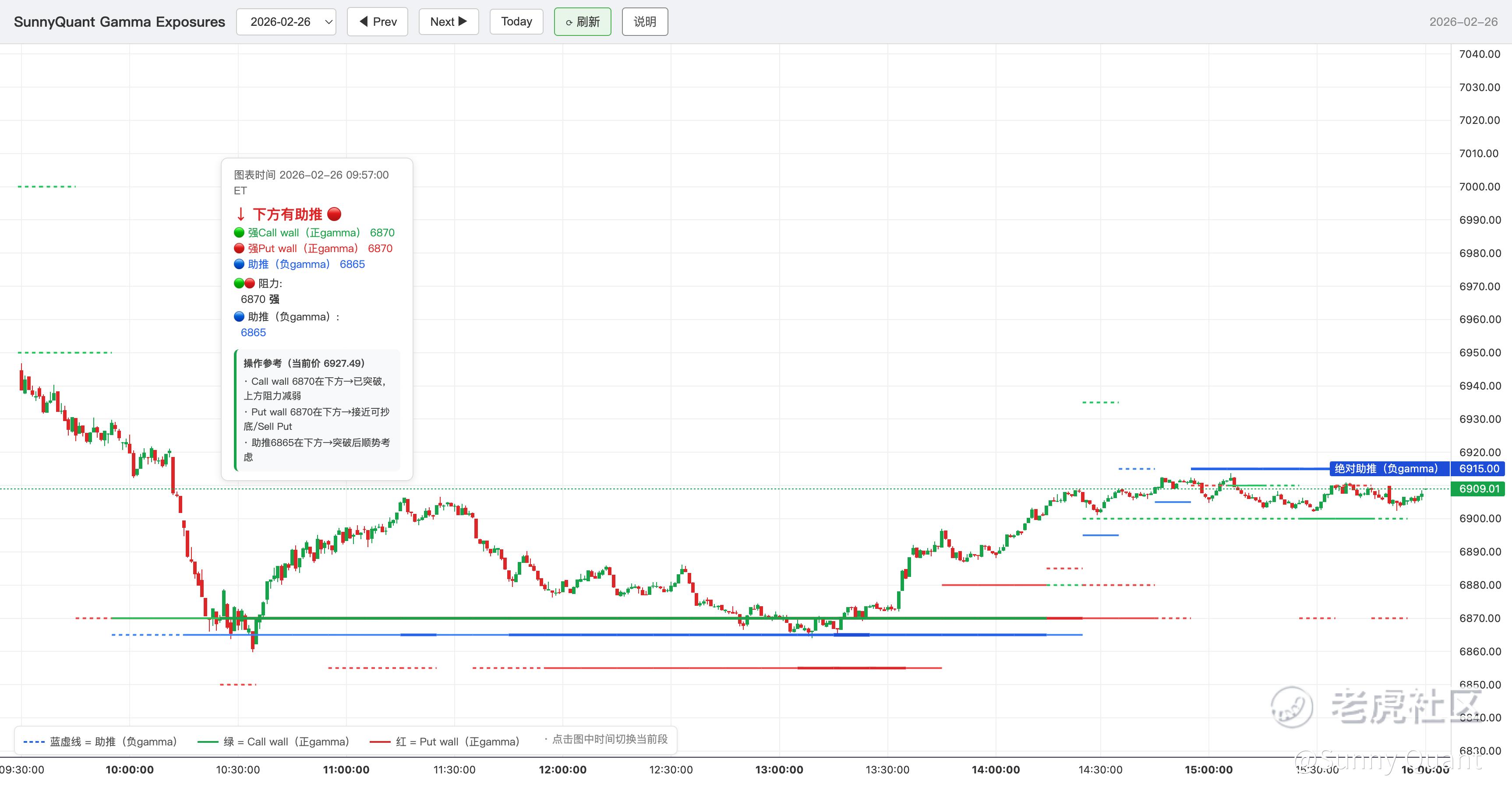 复盘:今日开盘后,建仓铁鹰时程序获取期权数据有些问题,导致铁鹰没建上(预期2组,收益在$300左右)。盘中程下跌趋势,在下方位置有些支撑,我们也执行了多次止盈操作。今日的 GEX 效果也是不错,结合开盘下跌的趋势(可通过超级趋势指标判断),可以顺势做我们gex助推位置的 buy put 操作,理论能有 2 倍+ 的收益。