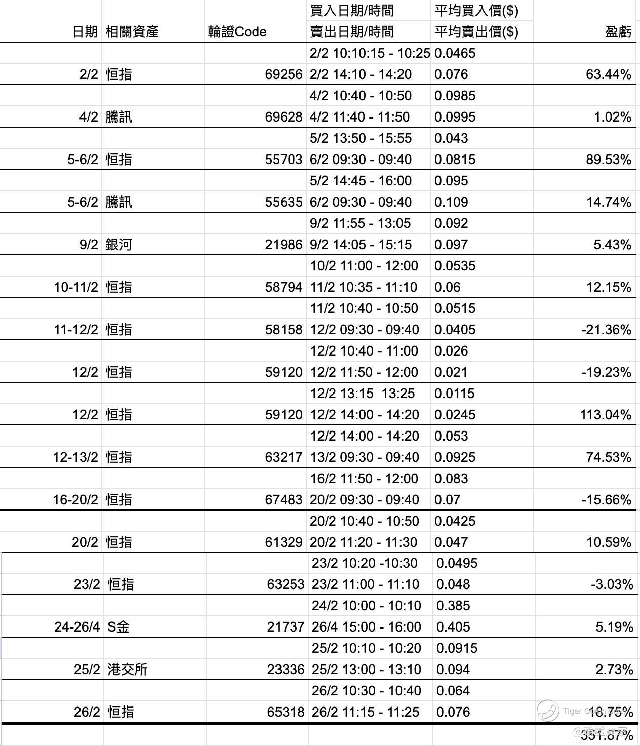 今年2月份因有农历新年期假关系,所以全月交易日只得17日;唯成功出仓次数却有16次,算是比较密的一个月。
