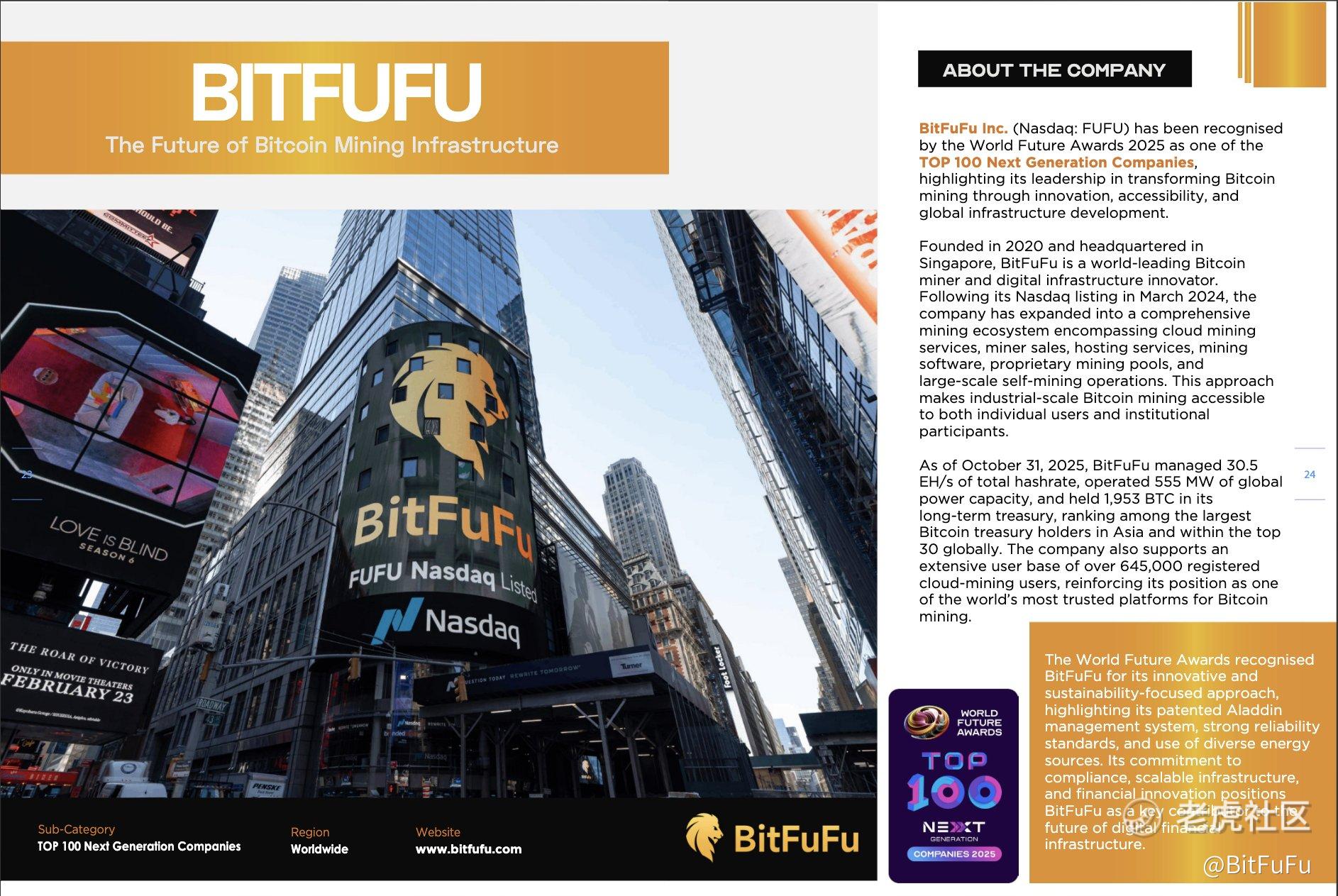 今年1月,Futurenomic Magazine在最新的一月刊中用专题介绍了BitFuFu 👉 https://issuu.com/luxurylifestyleawards/docs/top_100_next_generation_companies_2_5b4e583d697678