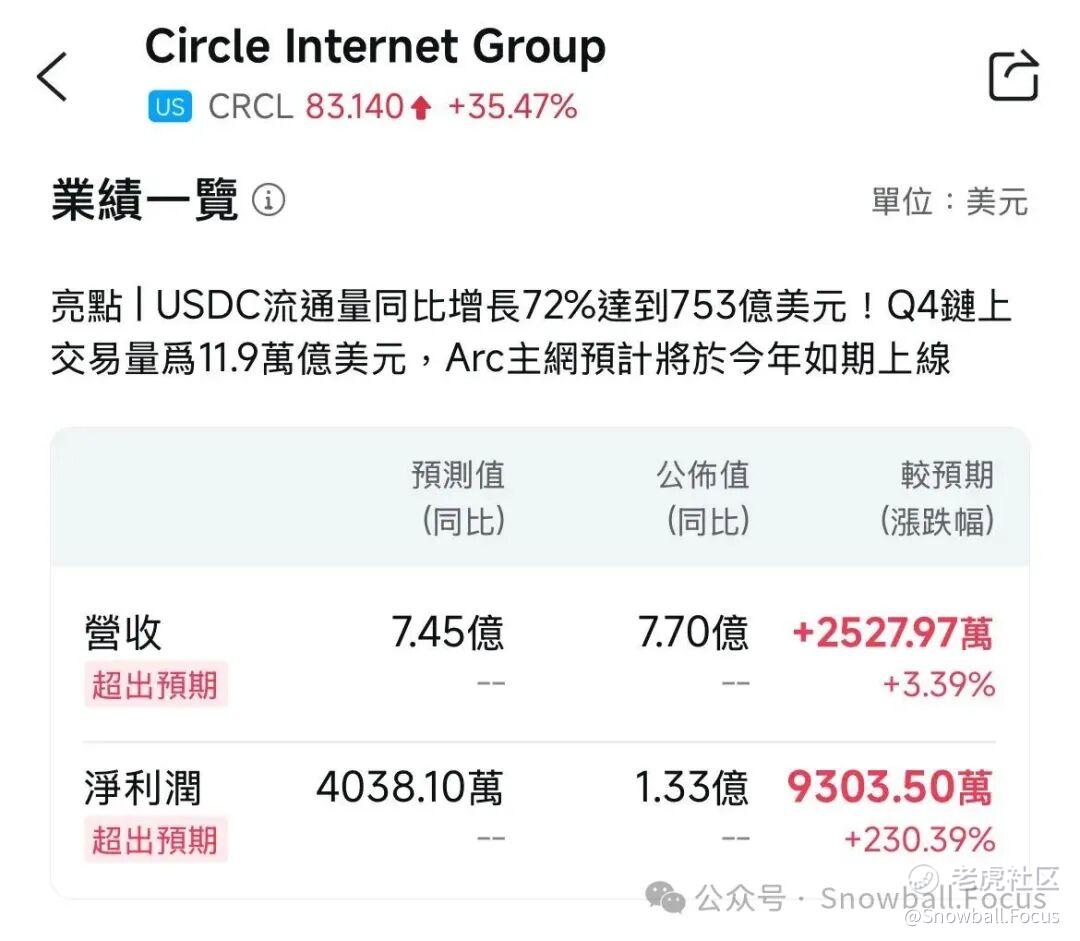 而Circle盘前发布的这份炸裂财报,则像一颗火星扔进了干柴,直接把股价点燃了,单日狂飙约35%,创下IPO以来最大涨幅。