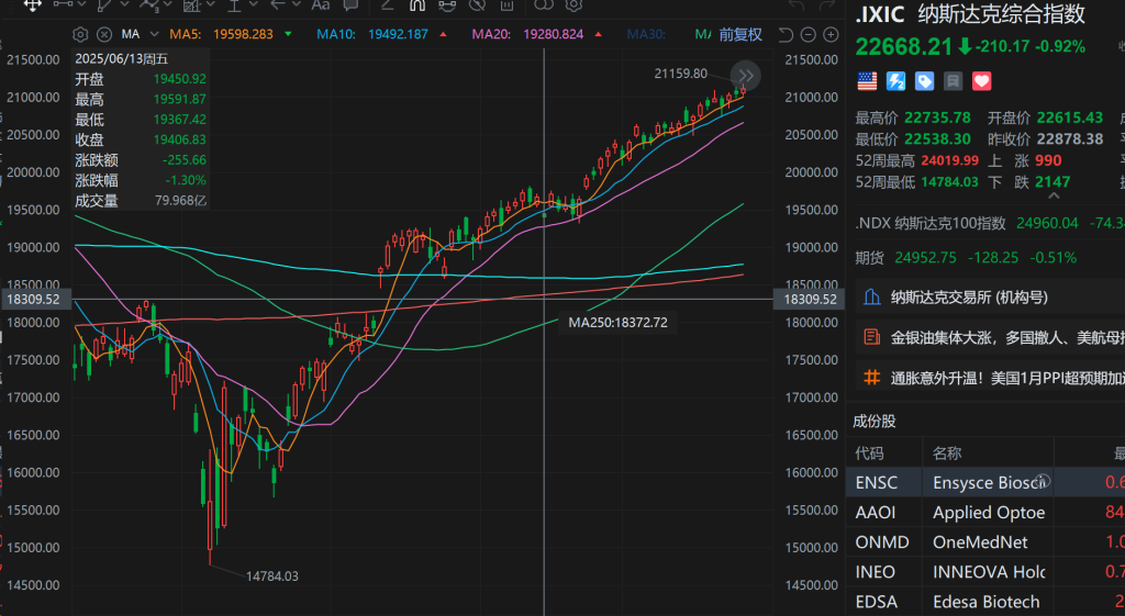 但去年纳指在这个期间非常强势,只有6月13日开战的时候跌了一下,然后股市和油价就没有任何联动了。