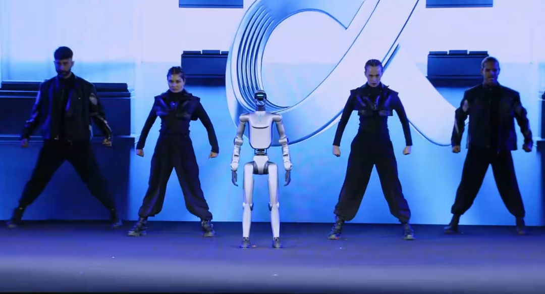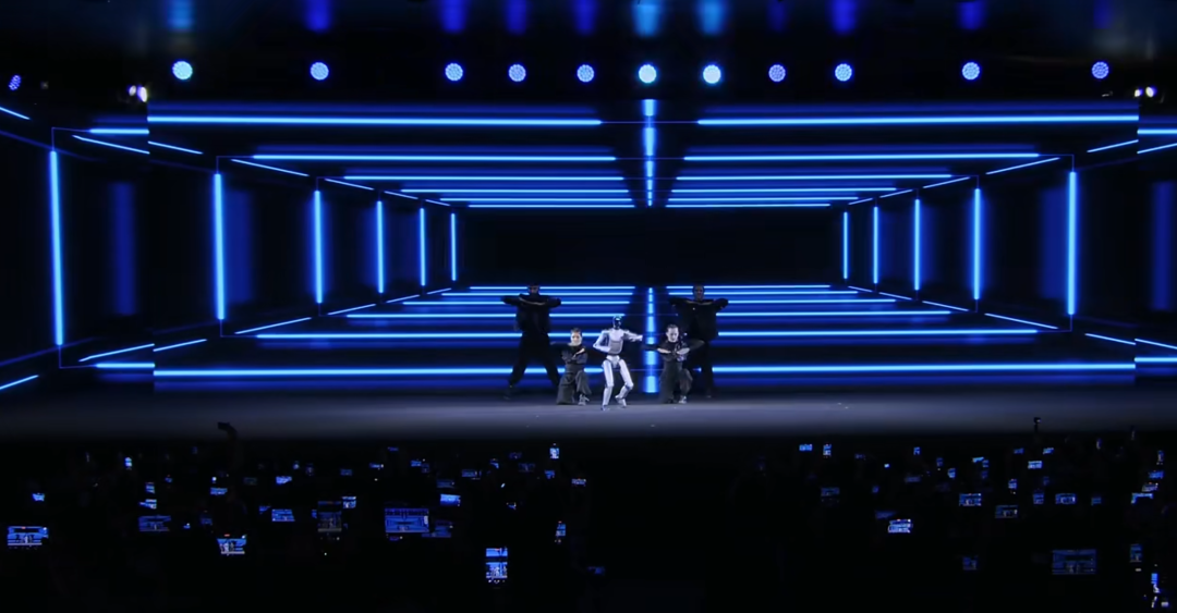在动态展示环节,Robot 不仅实现了稳定灵活的自主行走,更伴随音乐完成了节拍精准、动作丝滑的舞蹈表演,最终以一个干净利落的后空翻动作将现场气氛推向高潮,直观展现了其出色的运动能力与动作控制精度。