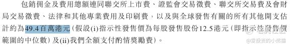 然后这个票招股书上按发售价范围的中位数12.50港元计算,公开的上市所有开支总额约为4940万港元,募资额约2.54亿港元,占比约19.45%,开支相比募资额算是一般化了。