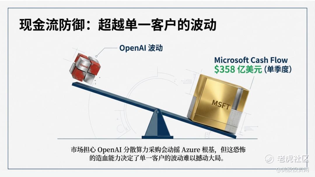 另一个关注的焦点,是微软与OpenAI关系的重构。市场担心OpenAI若分散算力采购会动摇Azure的根基,但别忘了,微软单季度经营现金流高达358亿美元,这种恐怖的造血能力决定了单一客户的波动难以撼动大局。
