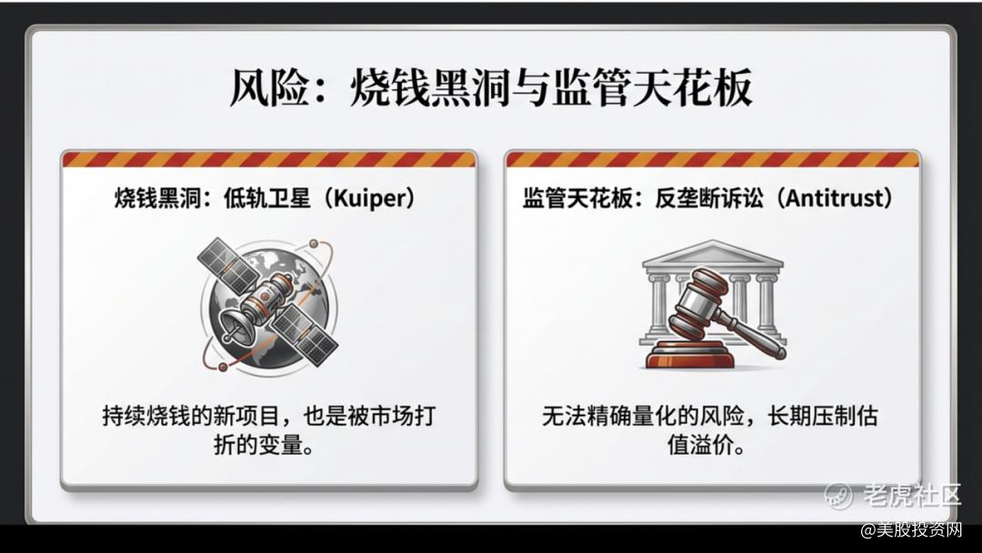但市场仍然要给两个变量打折。一个是持续烧钱的新项目,比如低轨卫星;另一个是监管不确定性。反垄断诉讼进入关键阶段,这种无法精确量化的风险,会长期压住一部分估值溢价。