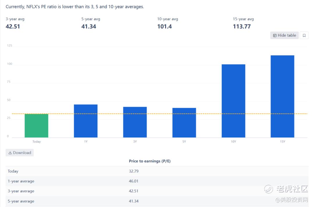 从估值角度看,截止到2026年2月,奈飞的市盈率(P/E)约为33倍,相比过去3年42.5倍的平均水平,目前的估值已经落到了蓝筹股的低位,甚至有了些价值投资的味道。