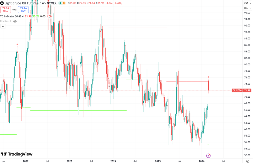 其他的机会方面,原油 $美国原油ETF(USO)$ $WTI原油主连 2604(CLmain)$ 可以留意74-80区间内的逢高卖出机会;而加密货币上周连续两次下探未果(其中还有一次是打仗引起的抛盘),可能会暗示有反弹修复的需求。不过比特币 $比特币(BTC.USD.CC)$ $比特币(BTC.USD.HKCC)$ 和以太坊 $以太坊(ETH.USD.CC)$ $以太坊(ETH.USD.HKCC)$ 趋势长期已经走坏,如果再有新低的话下方也缺乏有效的技术支撑。
