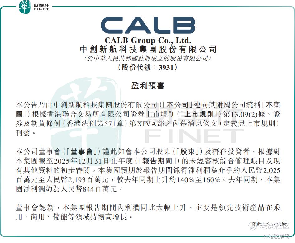 2月27日盘后, $中创新航(03931)$ 的一则盈喜公告,让这家动力电池企业再次站在聚光灯下。