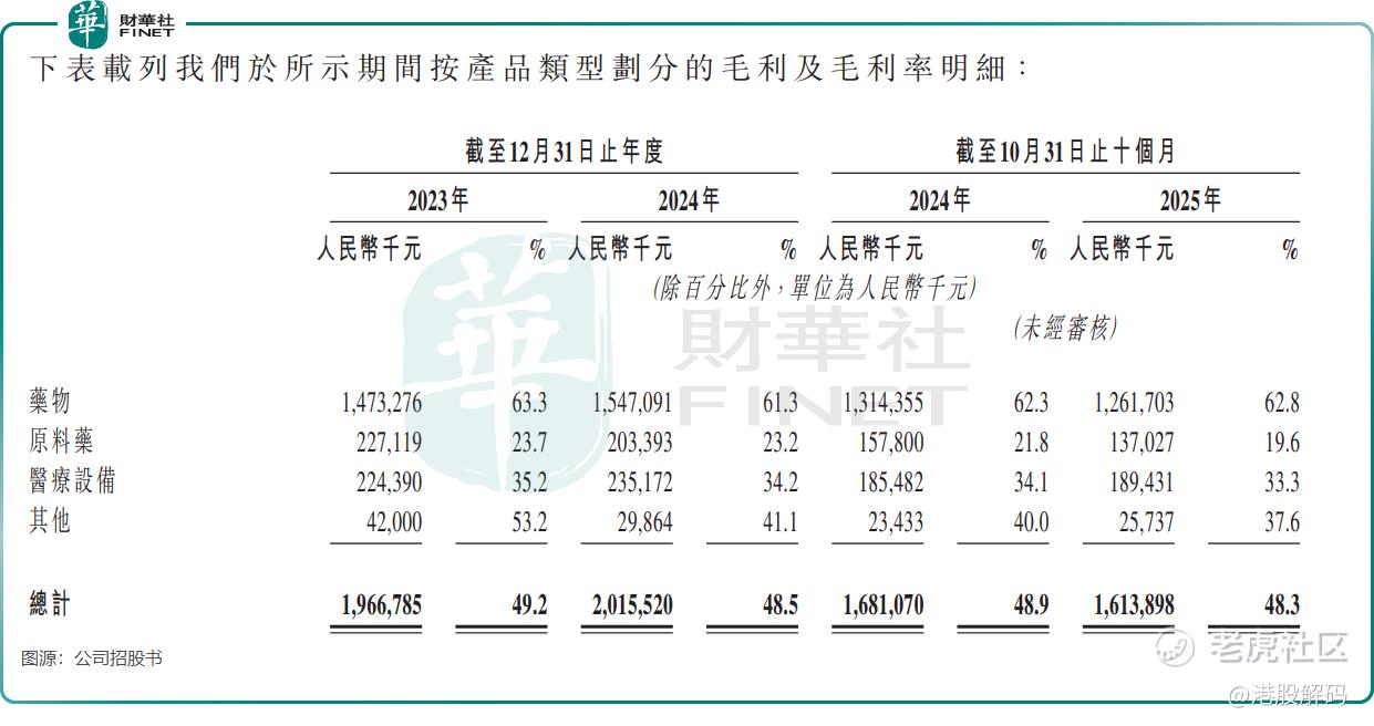 从行业层面看,挑战更为严峻。一方面,集采政策持续挤压利润空间。公司多款产品已纳入国家或省级带量采购计划,虽中标带来销量提升,但价格大幅下降对收入和毛利率造成显著影响。2024年,公司药物毛利率已从2023年的63.3%降至61.3%,2025年前十个月为62.8%,反映出集采带来的盈利压力。