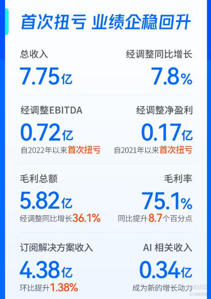 微盟集团2025年中期报告中,其订阅解决方案收入为4.38亿元,同比下降了10.1%。公司表示,主要是因为在2024年削减了低质量的订阅业务,带来2025年上半年订阅收入递延部分的减少约0.3亿元人民币,但订阅解决方案收入环比是呈现企稳回升。