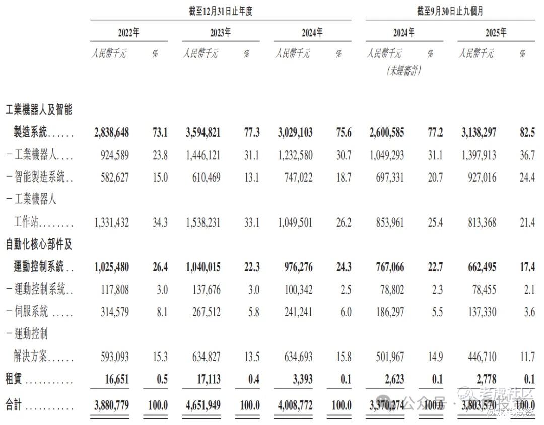 公司主要营收来源工业机器人及智能制造系统 、自动化核心部件及运动控制系统及租赁。2024年营收分别为:30.29亿、9.76亿、339.3万;占比分别为:75.6%、24.3%、0.1%。