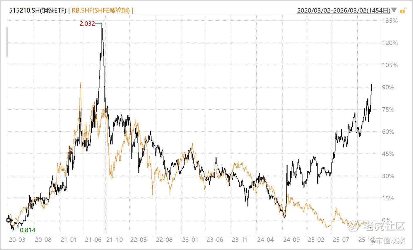 ▲钢铁板块VS螺纹钢,来源:Wind