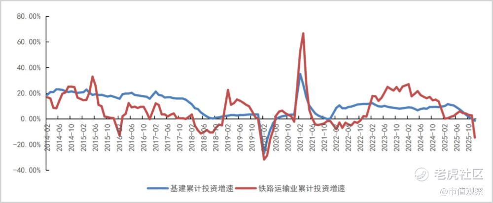 ▲基建和铁路运输业累计投资增速,来源:山西证券