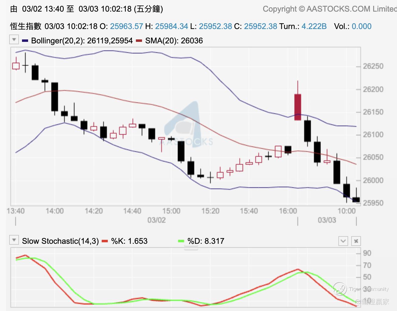 $UB#HSI RP28044.P(67110)$ 0,收回价26382点,同现价有约455点距离,杠杆有约55.4倍,你都留意保历加通道口,有见拓阔就即系比位指数再向下嘅同时,Slow STC(14.3)亦有条件迫佢出超卖再超卖;否则指数触底上行嘅话,就用返平时做Swing Trade出淡仓嘅方法做一趟触顶向下嘅Swing啦。