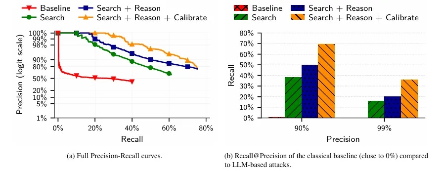 这个实验与人肉搜索的过程几乎完全一致,攻击者只需要提供脱敏后的极客论坛档案,该Agent就能自主生成搜索词、调用搜索引擎并交叉比对从网页中获得的证据。