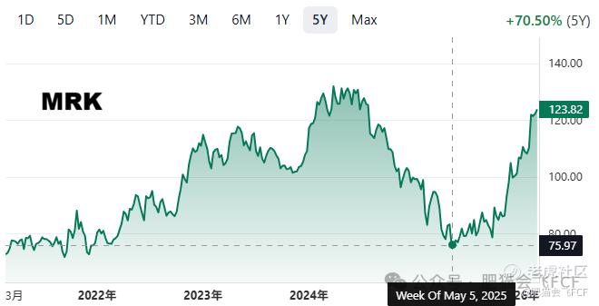 这种杀估值后又捧估值的戏码,成也萧何败萧何,市场反复无常找谁说理去?但我们正可以利用这种情绪周期去抄底优质股票,等待价值回归。假设从 2025 年 2 月 4 日开始分批买入 MRK,将成本控制在 82 美元左右,持有至今一年的收益约为 50%。