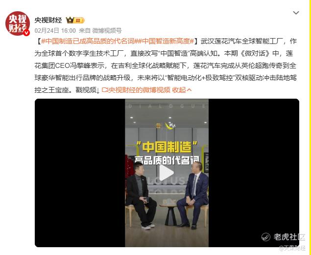 央视点赞莲花跑车,赞的不仅是一个品牌的复兴,更是中国智造赋能全球高端制造的全新可能。从莲花的实践中,我们看到中国汽车工业正以技术定力、制造底气和品牌灵魂,在全球舞台上书写新篇。而这只是开始,随着更多中国智造的突破,中国制造必将在全球高端产业赛道上,走出更自信、更宽广的全球化之路。 $路特斯(LOT)$