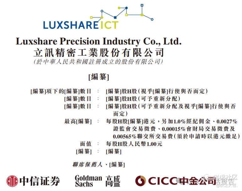 2026年2月27日,立讯精密第二次向港交所递交招股书,拟在香港主板上市,联席保荐人为中信证券、中金公司、高盛。公司于2010年9月在A股上市,代码002475,截至3月2日的A股总市值高达3578亿人民币。