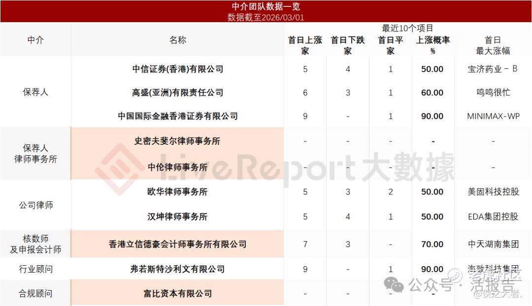 据**大数据统计,立讯精密中介团队共计10家,其中保荐人3家,近10家保荐项目数据表现普通;公司律师共计2家,综合项目数据表现有待提升。整体而言中介团队历史数据表现中规中矩。