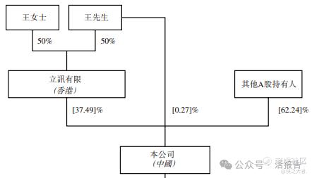 立讯有限(王女士及王先生各占50%)持股37.49%,王先生直接持股0.27%;